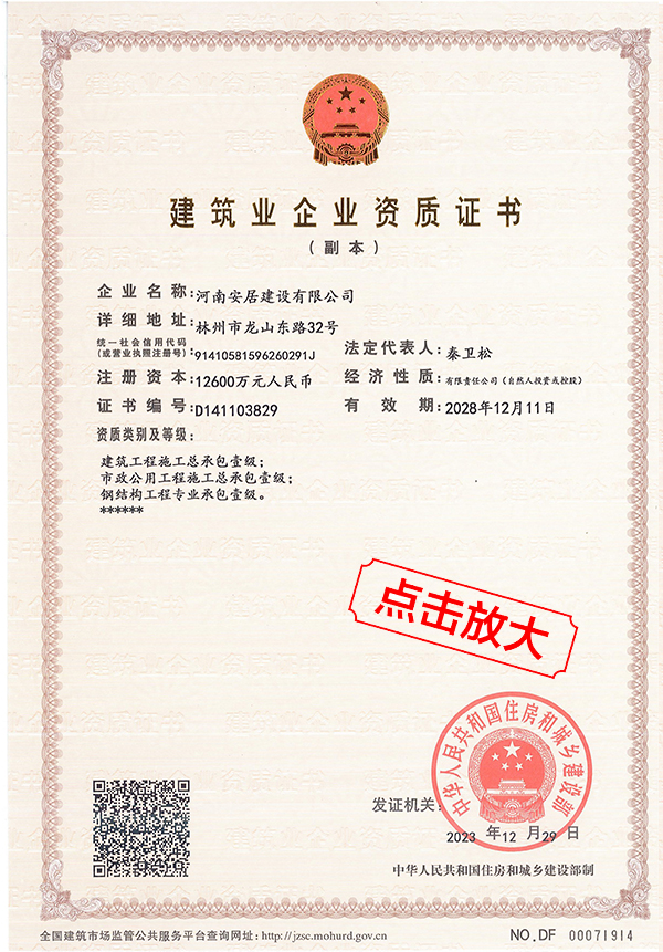 滔滔黃河哺育了中華民族拼搏向上的奮斗精神,巍巍太行造就了中原兒女的紅旗渠精神。百萬林州人下太行,鑄就了中國建筑之鄉(xiāng)響當當的耀眼品牌。河南安居建設有限公司從誕生起血液里就流淌著紅色基因,秉承“安得廣夏千萬間,大庇天下寒士俱歡顏”的擔當精神,用鋼筋混凝土筑起了高樓大廈,也用一流品質、家國情懷打造了安居建設的輝煌成績。公司成立于2012年,注冊資金12600萬元,公司成立至今,擁有建筑,市政施工總承包等十項一級資質;其他二級等資質共二十余項。公司秉承質量第一,服務為主,堅持垂直管理,從不設立分公司等分支機構。